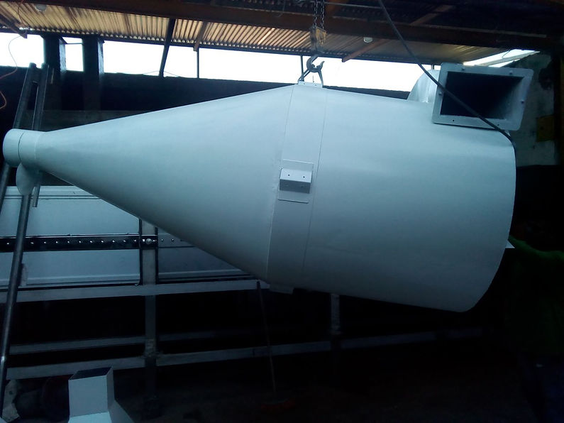 Equipo utilizado para separar partículas sólidas suspendidas en el aire, gas o flujo de líquido, sin el uso de un filtro de aire, utilizando un vórtice para la separación. Los efectos de rotación y la gravedad son usados para separar mezclas de sólidos y fluidos.
